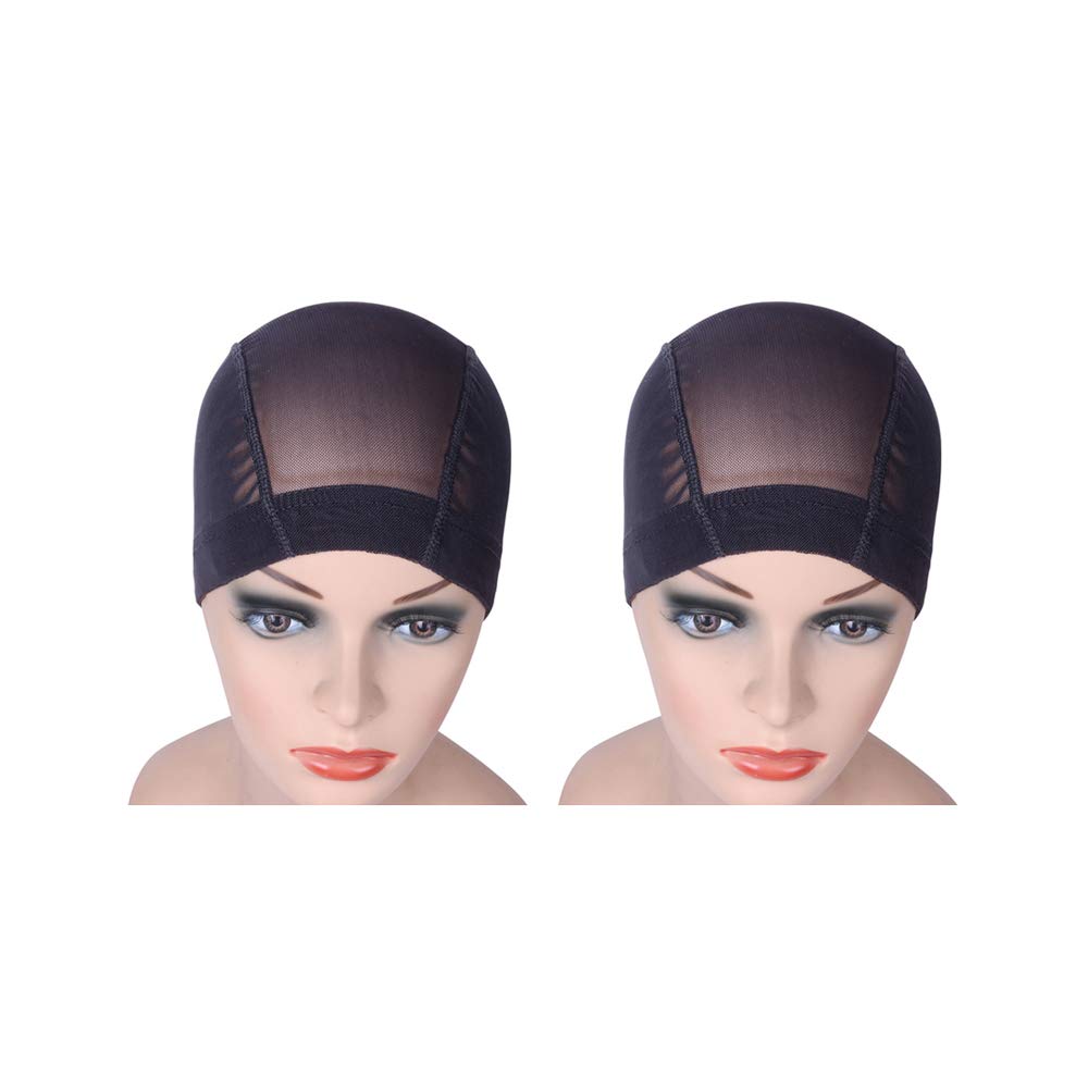 2 Pcs/Lot Wig Caps Mesh Cap for Making Wig Stretchable Hairnets with Wide Elastic Band Mesh Dome Cap for Wigs (Black Mesh Cap M)